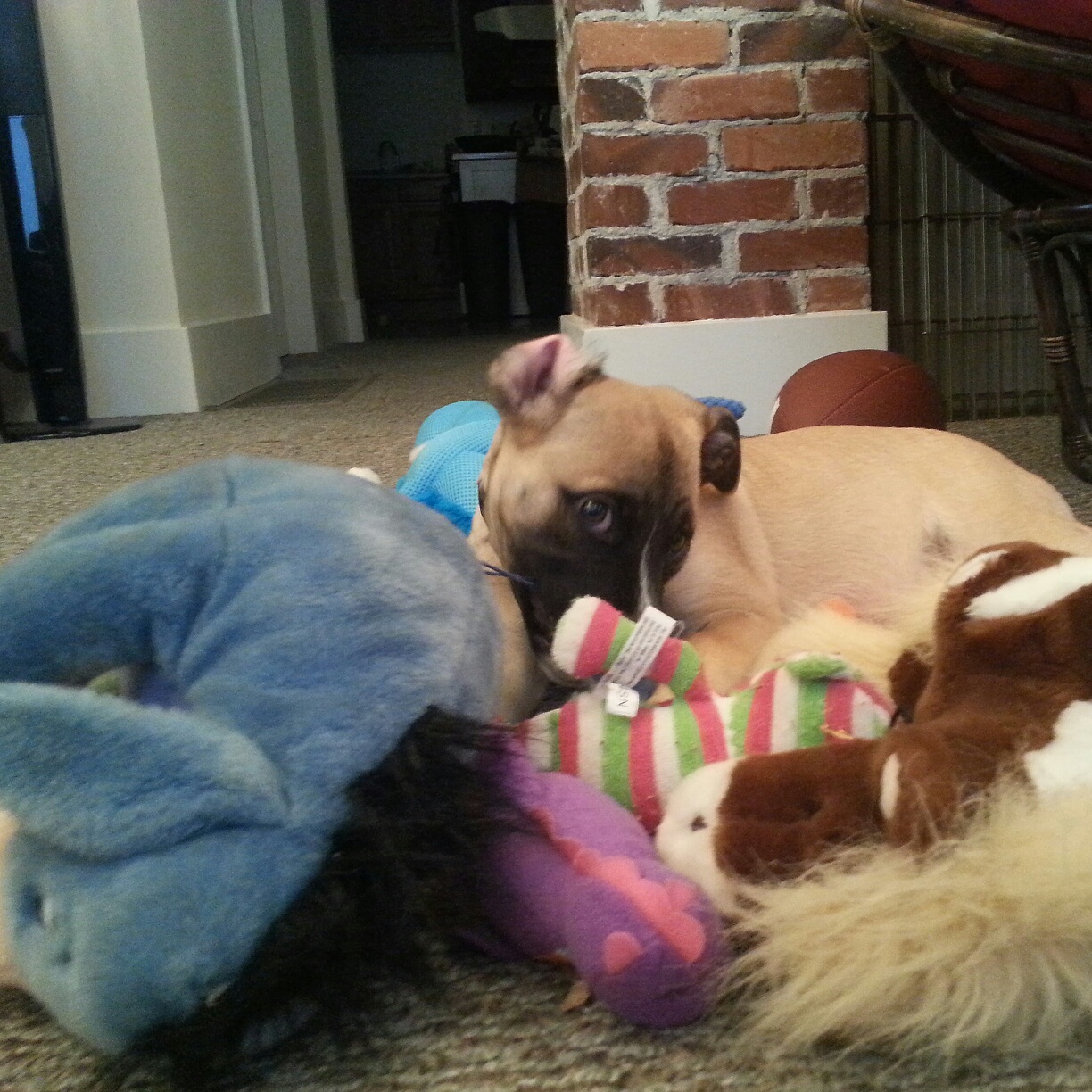 After Pickle was fully vaccinated, we started going on longer walks and having more exposures. She could meet strange dogs, teaching good introduction methods (we’re working on it) and having her on the street, closer to the smells and sounds of traffic and strangers. She also became more visible, so there were many more pets and hand outs from people passing by, which made Pickle happy. It helps that I am a dog walker, which puts her around dogs for at least 2 hours a day, 5 days a week.